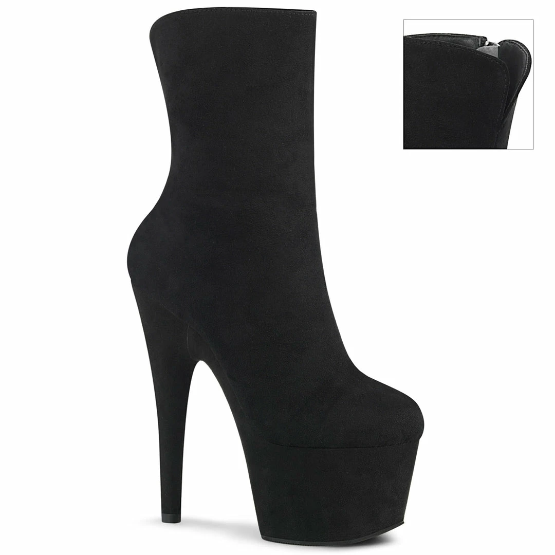 Black Faux Suede Platform Ankle Boot Featuring Fully Wrapped Platform Bottom