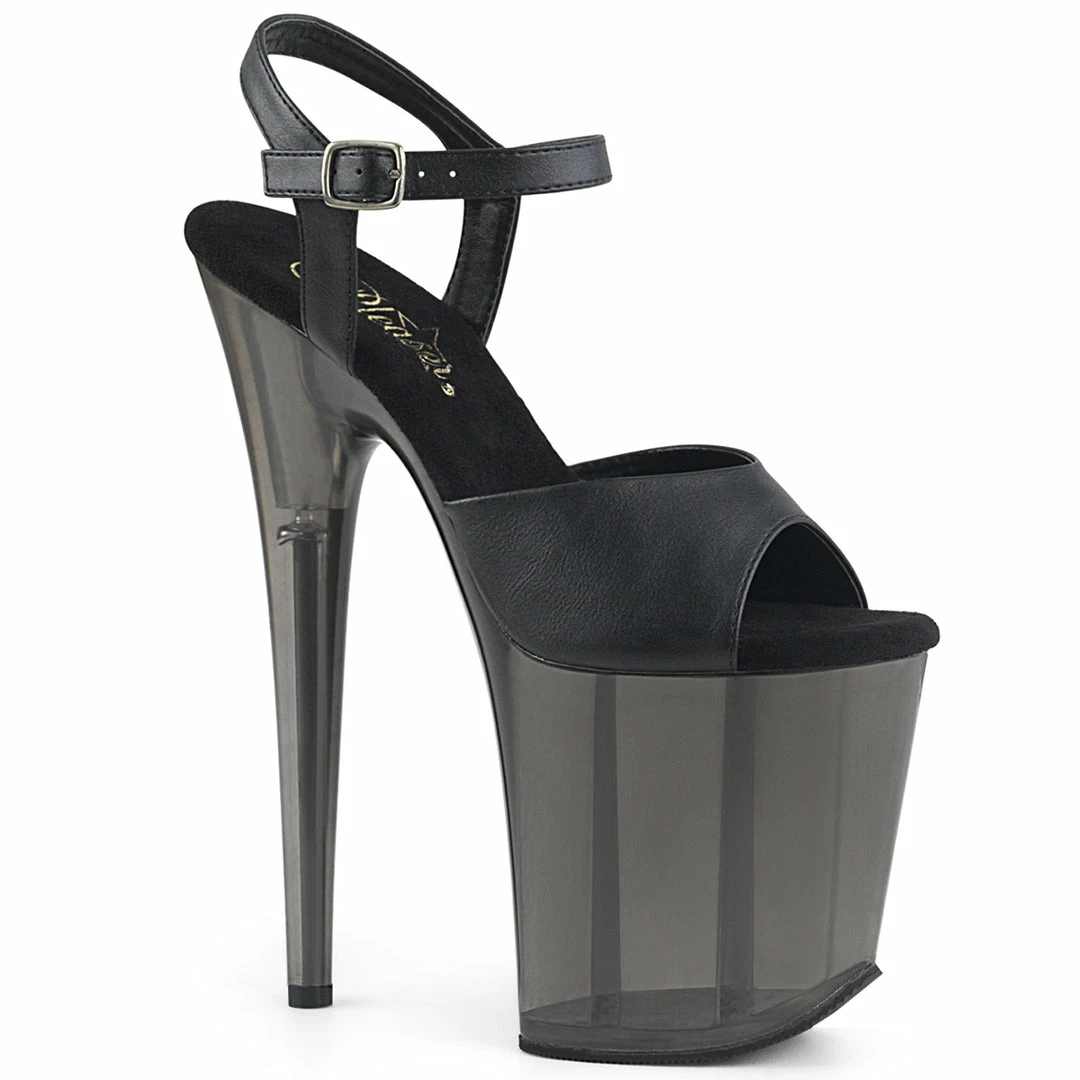 Black Tinted Platform Ankle StrapβΒ Exotic Dancer Shoe, Black Faux Leather Upper