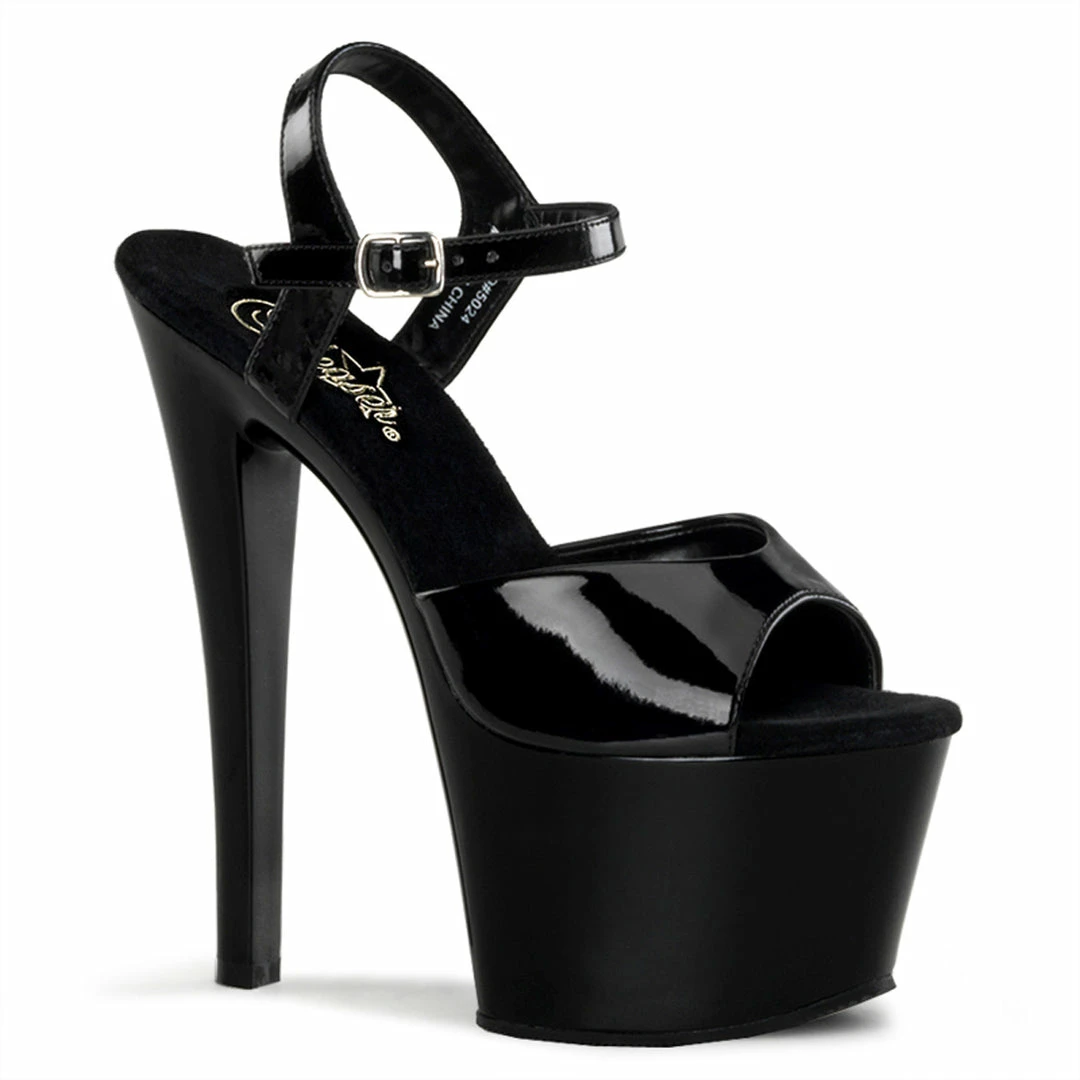 Black Patent Platform Ankle Strap Pole Dancing Sandal