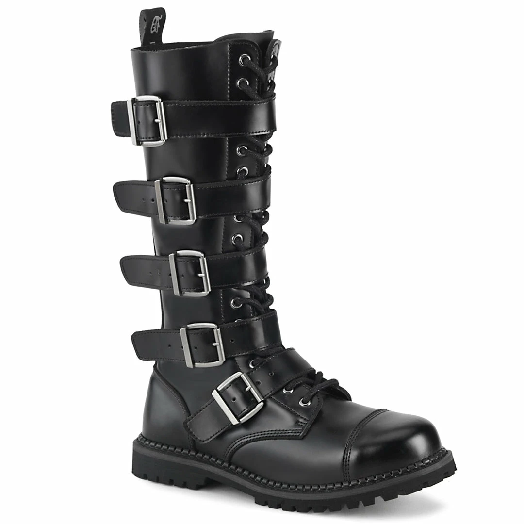 Demonia 18 Eyelet Unisex Leather Steel Toe Lace-Up 5 Buckle Knee Boot,